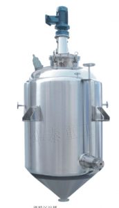本設(shè)備是由附夾套的橢圓封頭,錐形底的圓筒體,內(nèi)裝三葉式攪拌以及特殊的微調(diào)旋出液管等組裝而成,中藥水煎濃縮采用加入酒精配成一定醇度的液體,然后常溫,低溫冷凍沉降進(jìn)行液固分離,以提高中藥提取液的純度及澄明度。